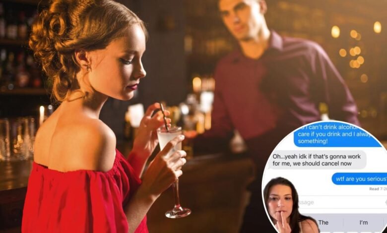 El hombre cancela la fecha de último minuto sobre la mujer que no bebe