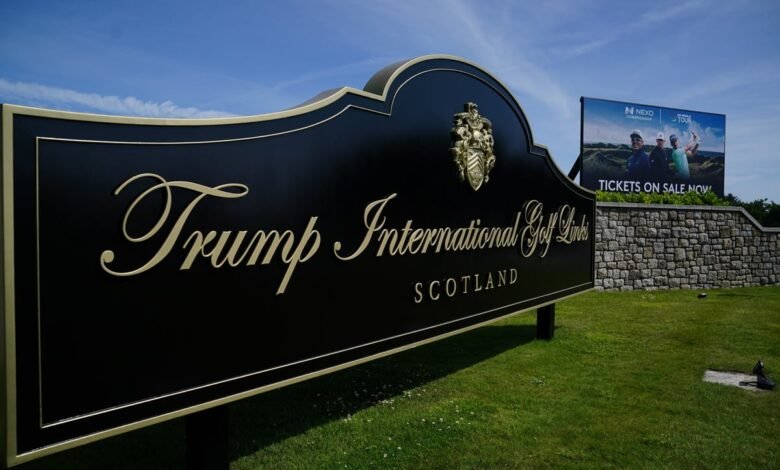 Donald Trump Escocia: El letrero de ‘Twinned with Epstein Island’ aparece en el campo de golf Aberdeen de Donald Trump