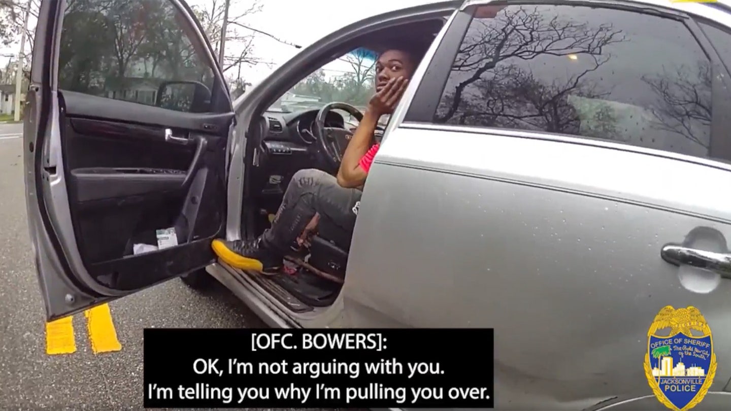 El viral Las imágenes comenzaron con McNeil hablando con un oficial sobre por qué fue detenido, contando cómo un oficial le dijo que los faros estaban fuera durante el tiempo aparente. En las imágenes de BodyCam publicadas por la Oficina del Sheriff de Jacksonville, se ve a McNeil negándose a entregar su licencia, registro y prueba de seguro.