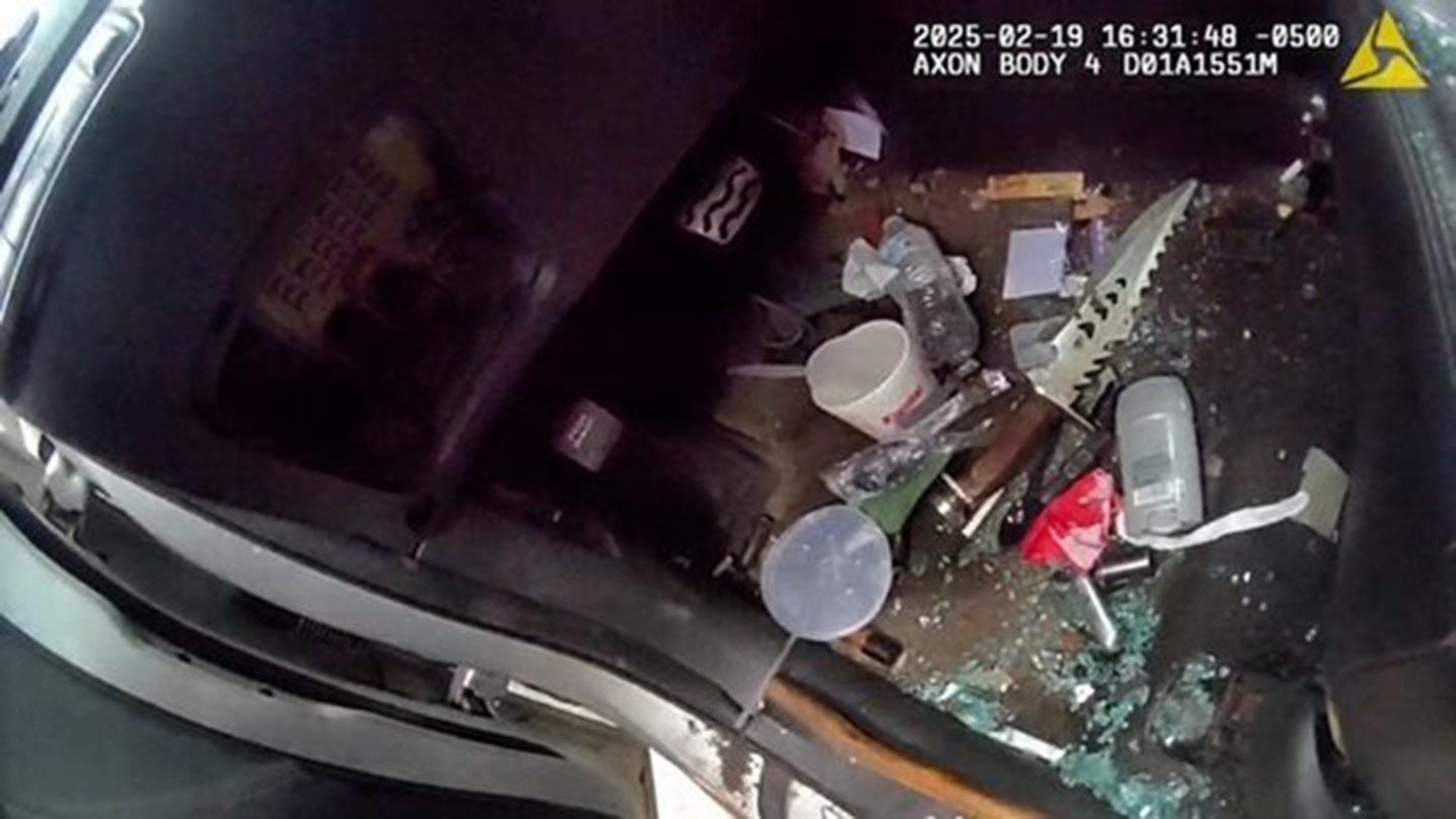 McNeil permanece en el vehículo y la ventana finalmente se rompió. Los oficiales dijeron que encontraron un gran cuchillo serramado sin saria en el piso del lado del conductor del vehículo de McNeil.