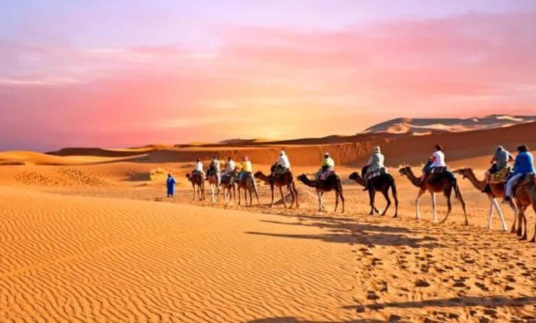 Si quieres hacer una caminata de camello, el desierto del Sahara Marruecos es uno de los lugares más icónicos. Puede elegir hacer viajes de un día a varios días de largo, atravesar dunas de arena interminables y ver impresionantes puestas de sol. La caminata a menudo te lleva a las aldeas de Bereber, donde puedes presenciar un estilo de vida tradicional. Se ofrecen visitas guiadas en diferentes duraciones para adaptarse a diferentes preferencias.