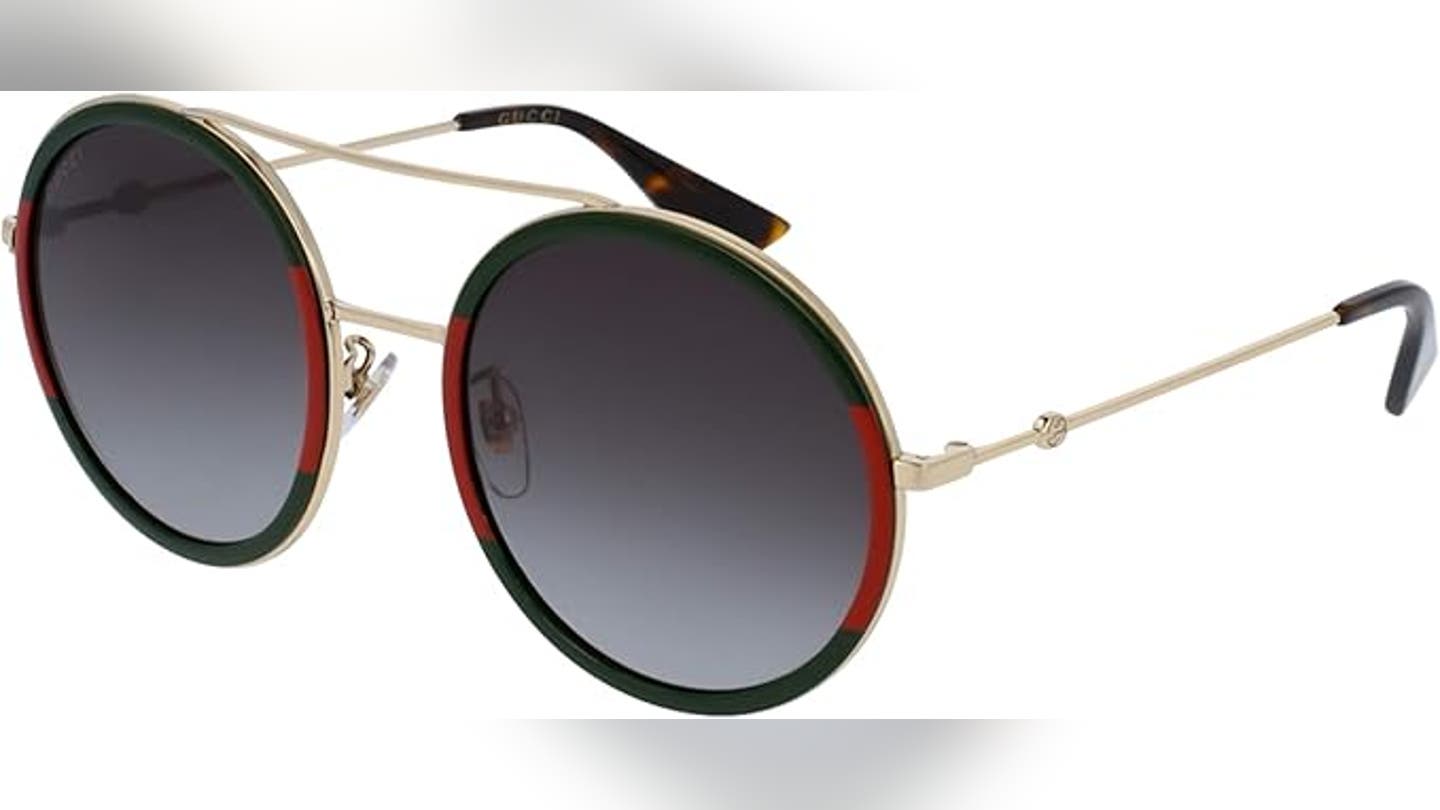 Conocido por sus diseños audaces y glamorosos, el par de metales de gradiente redondo de Gucci presenta marcos de gran tamaño, adornos de logotipos y lentes de gradiente. (Amazonas)