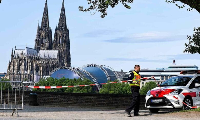 Los equipos de eliminación de bombas se preparan para calmar dos municiones de 20 toneladas y una de 10 toneladas después del descubrimiento de tres bombas no explotadas en el distrito Deutz de Colonia, Alemania, el 4 de junio de 2025