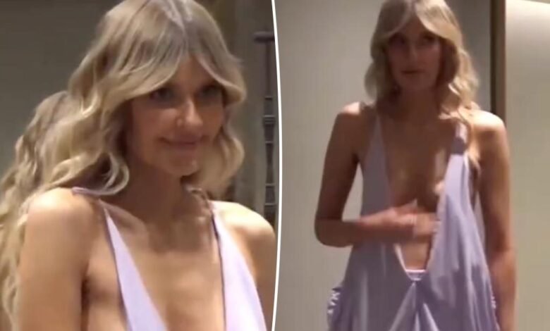 Elle Ferguson está siendo golpeado por asistir a un desfile de moda con un atuendo extremadamente revelador, que se ve modelando (arriba) en un video viral. @elle_ferguson/Instagram
