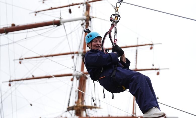 Lorraine Kelly: presentadora de TV Scottish en un acto Daredevil de 25 m de altura solo semanas después de la cirugía de ojo de cerradura