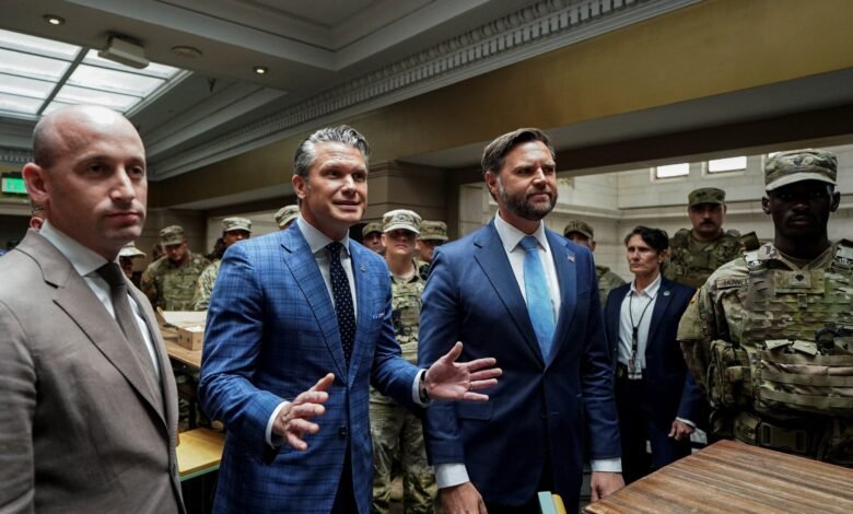 La aparición de Vance y Hegseth, que también incluyó al Jefe de Gabinete de la Casa Blanca Stephen Millerfue una escena sorprendente que ilustró el intenso enfoque de la administración republicana en la situación en Washington y su disposición a promover una iniciativa que ha polarizado la ciudad dirigida por demócrata.