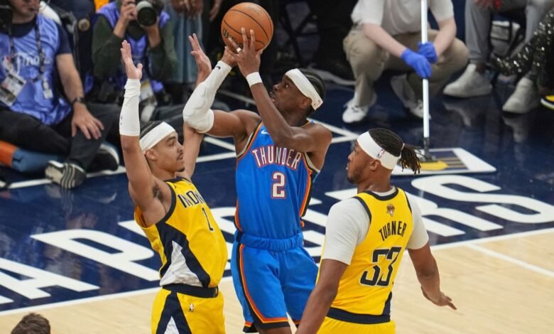 Y Shai Gilgeous-Alexander entregó, anotando 15 de sus 35 puntos en las 4:38 finales, limitando la manifestación de Oklahoma City de un déficit de 10 puntos en la segunda mitad y sellando una victoria de 111-104 sobre el Pacers de Indiana 111-104 el viernes por la noche para empatar las Finales de la NBA en dos juegos cada uno.