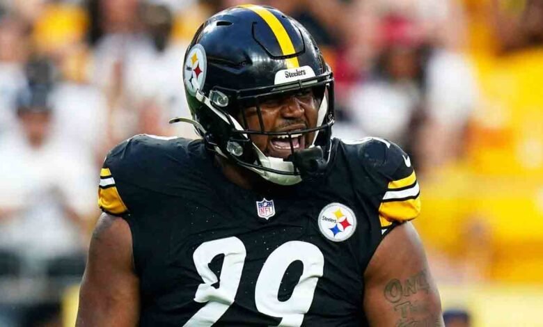 CHARLOTTE, NC-La selección del draft de primera ronda de los Pittsburgh Steelers, Derrick Harmon, fue llevada al vestuario después de que el ala defensiva lesionó la rodilla el jueves por la noche en el final de pretemporada contra los Carolina Panthers.