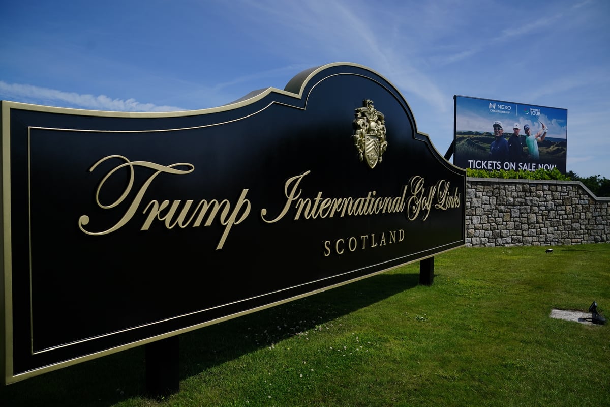 Donald Trump Escocia: El letrero de ‘Twinned with Epstein Island’ aparece en el campo de golf Aberdeen de Donald Trump