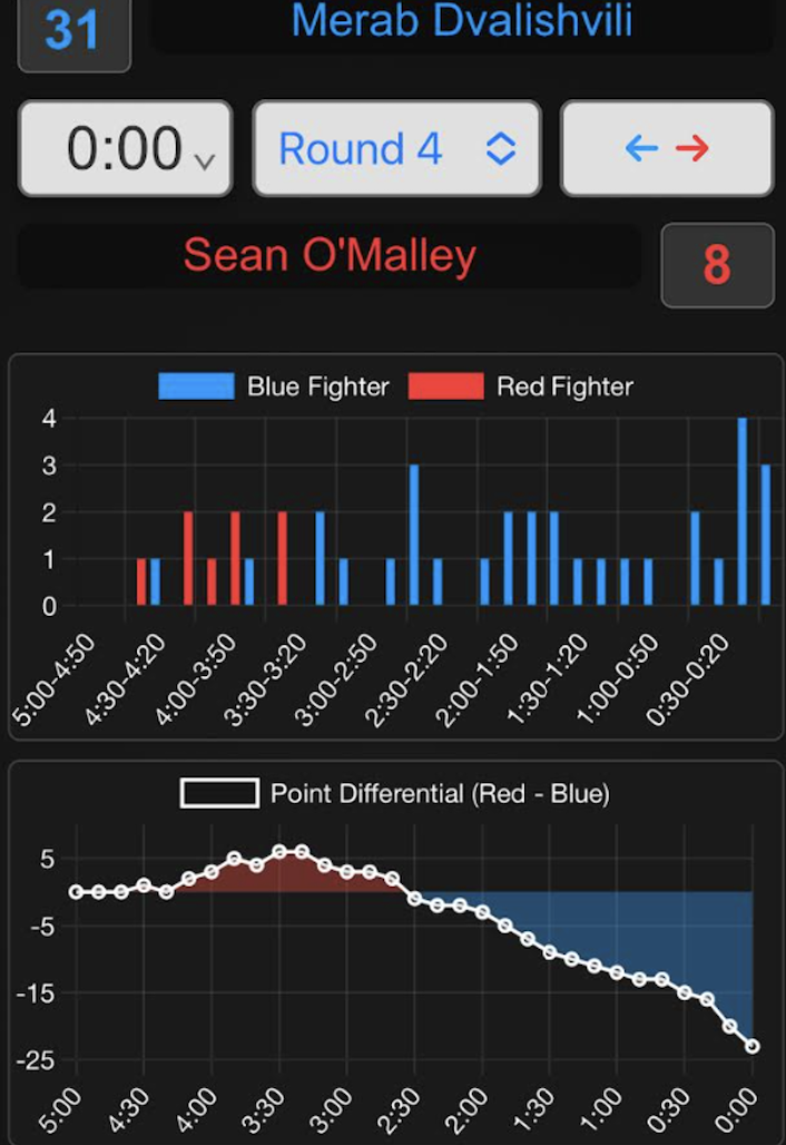 Al revisar el primer combate entre O’Malley y Dvalishvili, opté por usar la herramienta MMA Judge Analyzer y le pregunté a Lingenfelter si se sentiría cómodo volviendo a anotar la pelea conmigo para que pudiéramos comparar nuestros tintos después del hecho.