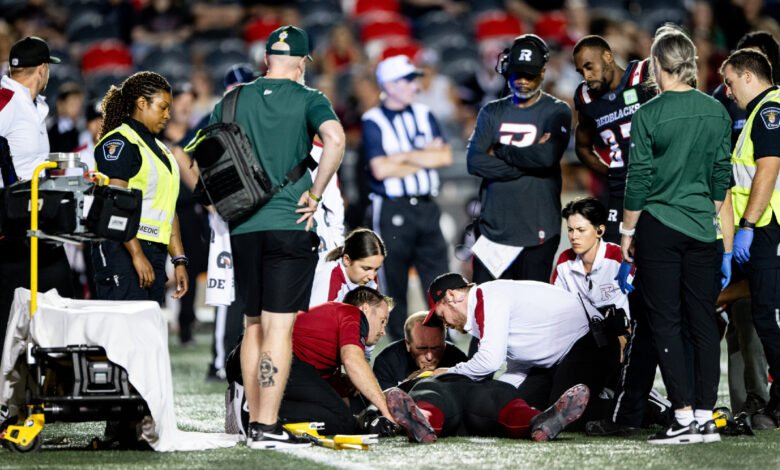 Después de su pérdida de 30-20 ante los Elks, los Redblacks proporcionó una actualización En las redes sociales que Okpoko «responde y tiene movimiento en todas las extremidades. Ha sido llevado al hospital para una evaluación adicional».