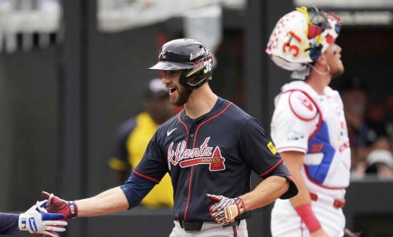 White se profundiza dos veces cuando los Bravos vencieron a los Rojos en la lluvia MLB Speedway Classic en Bristol