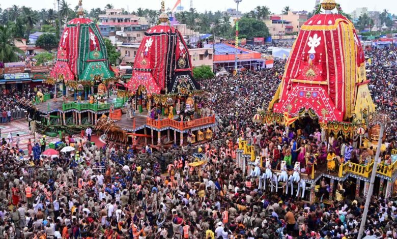 El festival dibujó decenas de miles de asistentes, informó la AP, mientras los devotos se reunieron para echar un vistazo a tres deidades en el procesamiento de carros en el Templo Jagannatha, un conocido templo hindú en Puri.