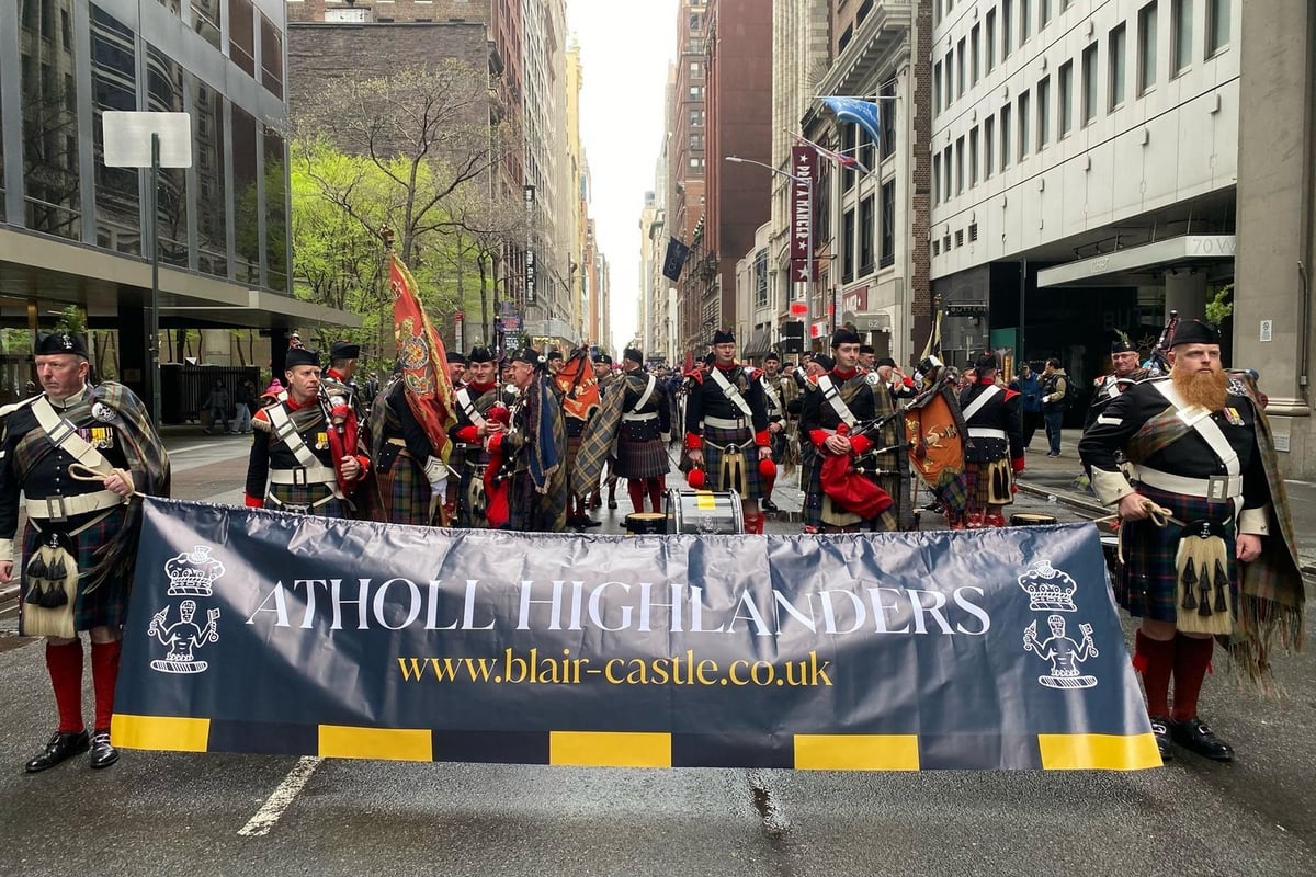 Actualmente en medio de una gira de 11 días por los Estados Unidos, el único regimiento privado de Gran Bretaña, los Highlanders de Atholl, criados y comandados por los duques de Atholl, y con sede en su hogar ancestral del Castillo de Blair en Highland Perthshire, han participado en el desfile del Día del Tartán de Nueva York el fin de semana.