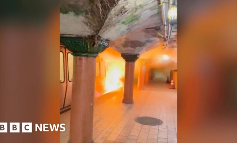 Los funcionarios de la Autoridad Portuaria de Nueva York y Nueva Jersey dicen que el incendio comenzó alrededor de las 06:15 del lunes en Newport Station en Jersey City, Nueva Jersey, según el socio estadounidense de la BBC, CBS News. Se suspendieron múltiples líneas de tren de rutas en Nueva York y Nueva Jersey para el viaje de la mañana. La causa del incendio está bajo investigación con varias personas tratadas por inhalación de humo, dicen las autoridades.