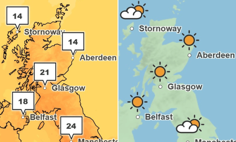 ¿Cómo es el clima hoy en Escocia? En su mayoría, se pronostican los cielos soleados el lunes con Glasgow listo para llegar a los 21c