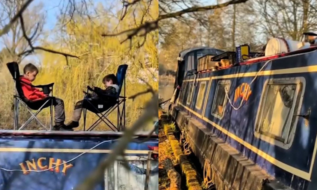 Conoce al padre soltero que cria a sus hijos en dos barcos, completo con ‘cine’ y estudia rincón