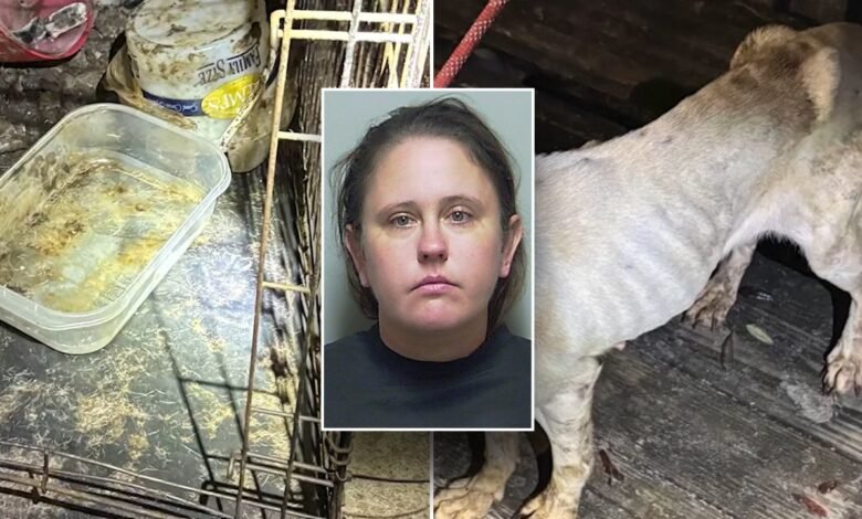 «Dos perros estaban encerrados en una habitación cubierta con aproximadamente 4 pulgadas de heces sin comida ni agua. Un tercer perro estaba en una jaula sin comida ni agua y fue muy demacrado. Cuatro perros más estaban en la sala de estar rodeado de heces y no tenían comida o agua adecuadas», dijo la oficina del sheriff, y agregó que había tazones en la sala de estar en la sala de estar, pero tenían insectos en los flotadores en los flotadores.