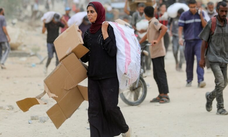 Un hombre palestino, Ibrahim Mekki, del campo de refugiados de Nuseirat en el centro de Gaza, dijo que esperó al menos seis horas y se arriesgó a ser disparado por las fuerzas israelíes para terminar con unas pocas bolsas de pasta.