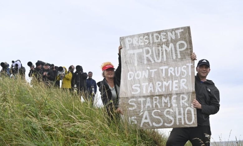 El presidente de los Estados Unidos apareció en su campo de golf Turnberry por segunda vez durante su visita de Escocia hasta ahora.