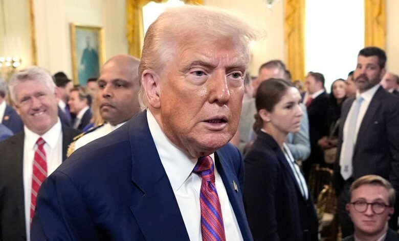 El presidente Donald Trump se va después de firmar la Ley Genius, un proyecto de ley que regula Stablecoins, un tipo de criptomoneda, en la sala este de la Casa Blanca, el 18 de julio de 2025. (AP Photo/Alex Brandon)