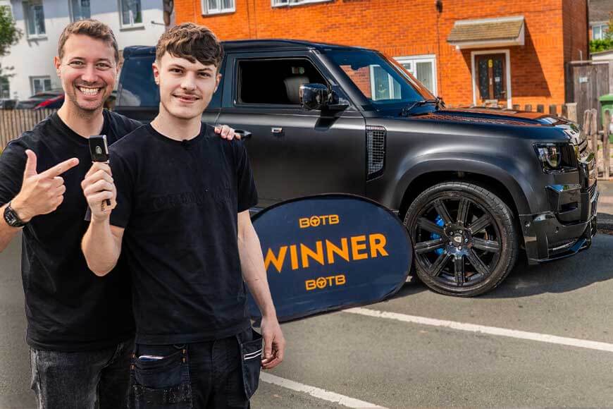 El adolescente de Tamworth, Ciaron Goldingay, ha ganado un nuevo defensor de Land Rover de £ 85k, Cappathian, después de comprar un boleto de sorteo de premios por solo 18p, dos semanas en aprender a conducir. Su reacción no tuvo precio cuando Botb lo sorprendió en casa.