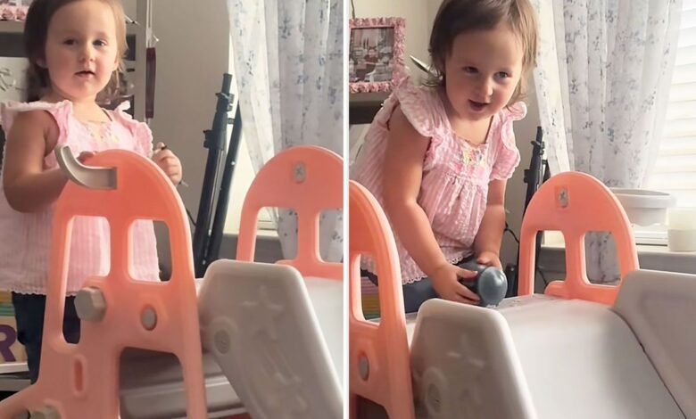 La hija de 2 años de Nicole Delgiudice, Harlee, estaba jugando en el tobogán cuando se volvió hacia su madre con una pregunta inesperada: ¿Podría enviar al gato de la familia por el tobogán también?