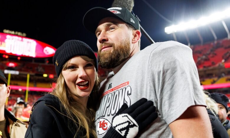 Estos dos tortolitos provienen de dos mundos diferentes: ya era una estrella en la NFL, uno de los únicos reinos de la cultura pop que aún no había conquistado. Ambos fueron muy famosos, pero es seguro decir que no tenían muchos fanáticos superpuestos. Sin embargo, la persiguió en público, algo nuevo para ella. «Travis me puso en explosión muy adorable en su podcast», dijo en 2023. «Lo que pensé que era el metal como el infierno».