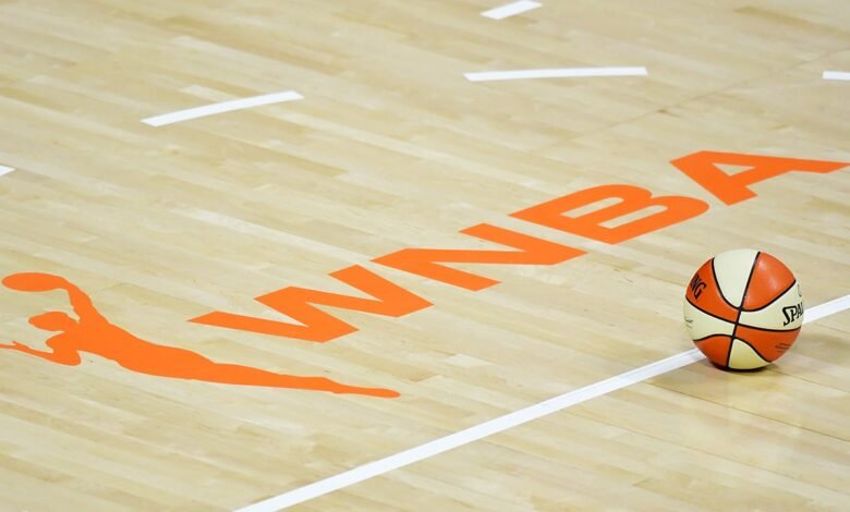 El logotipo de la WNBA en una pelota de baloncesto durante el inicio de apertura entre la tormenta de Seattle y el Sol de Connecticut en Climate Pledge Arena el 20 de junio de 2023 en Seattle. (Steph Chambers/Getty Images)