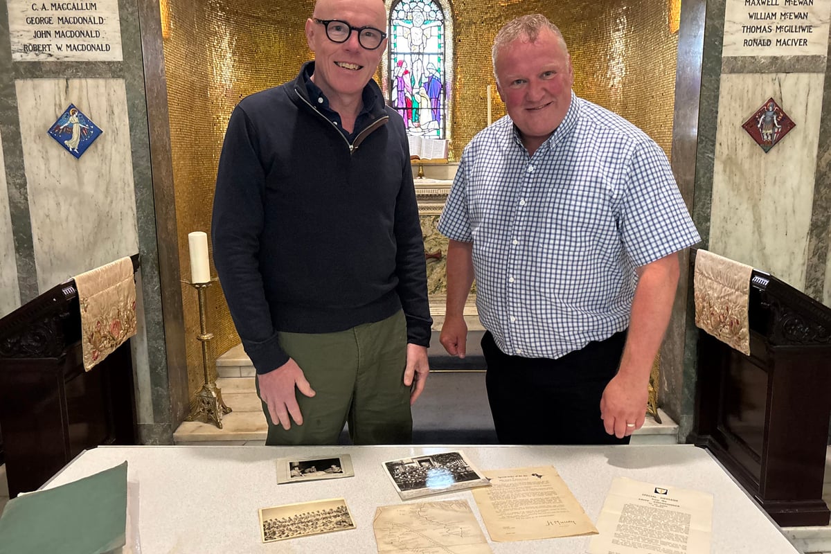 Hombre reunido con documentos de guerra de padre encontrados escondidos en el cajón de escritorio