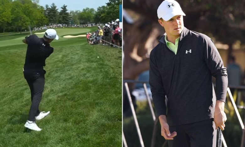 Jordan Spieth envía a los fanáticos agachándose para evitar ser golpeados con la pelota en el torneo de golf