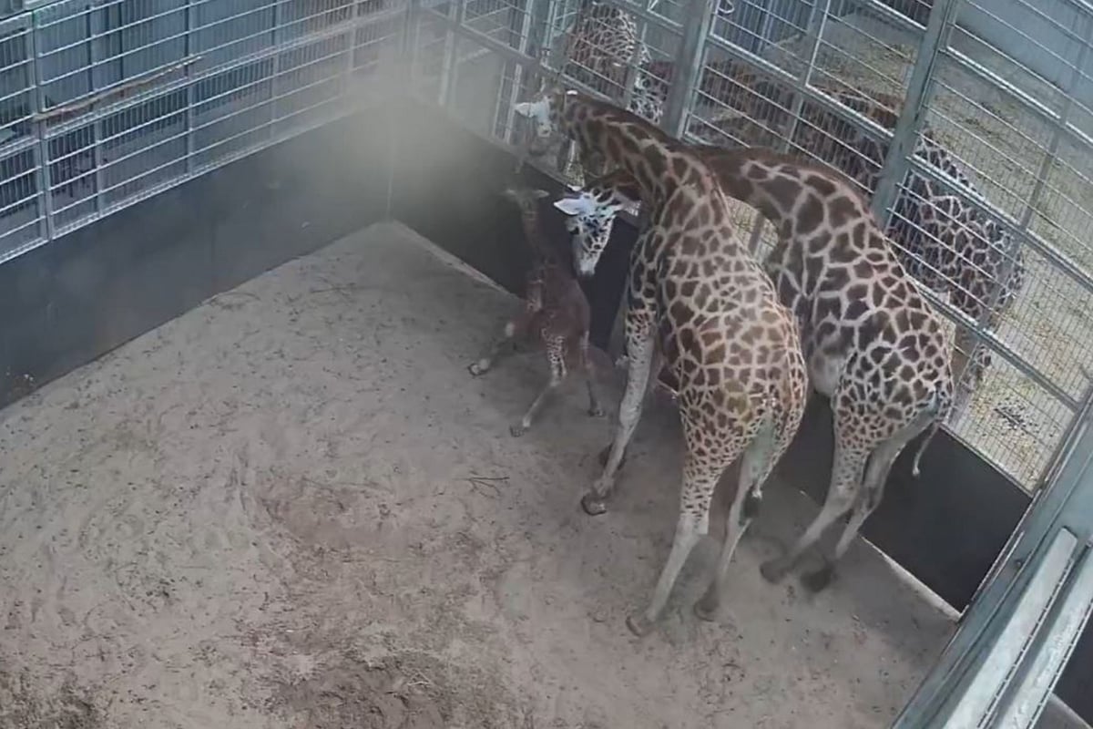 Después de algunos tropiezos, el ternero decidido logró ponerse de pie menos de una hora después de haber nacido.