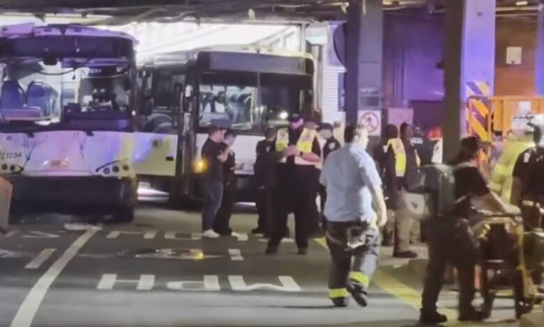 Los autobuses chocan en un accidente en la terminal de autobuses de Nueva York, hiriendo a 12
