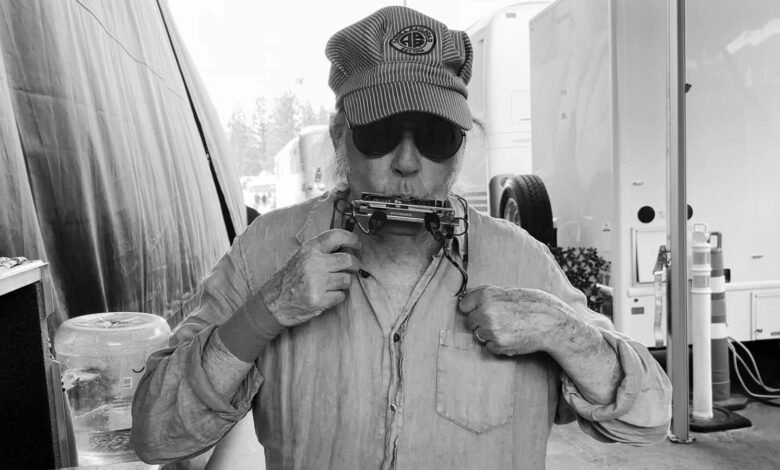 Sin mencionar el mismo guitarrista: 34 años Micah Nelsonquien vio su primer espectáculo de Neil en el picnic del 4 de julio de su padre. Dado que el padre de Micah se llama «Willie», se ajusta a los corazones que hicieron su debut en vivo en Farm Aid. La sección de ritmo es Corey McComick y Anthony Logerfo, quienes ya han grabado con Neil Young con promesa de lo real, su banda con Micah (y su hermano Lukas). Y Neil tiene un viejo amigo forajido en el órgano: Spooner Oldham, la leyenda de Memphis, de 81 años, escuchada en tantos clásicos de Soul por Aretha Franklin, Wilson Pickett y Percy Sledge. Ha estado jugando con Neil desde su clásico de 1978 frito en el país Llega un momento. Entonces, la banda está llena de la historia de Young: Micah Nelson incluso aprendió a tocar las partes de acero pedales de Ben Keith en su telecaster.