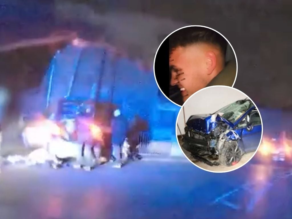 Observe el momento en que un conductor sin seguro coloca un automóvil en una pared antes de huir de la escena dejando a tres personas gravemente heridas, y un pasajero en el maletero.