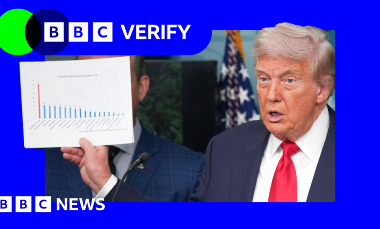 BBC Verify mira lo que muestran las cifras sobre el crimen violento en la capital y cómo se compara con otras ciudades de los Estados Unidos.