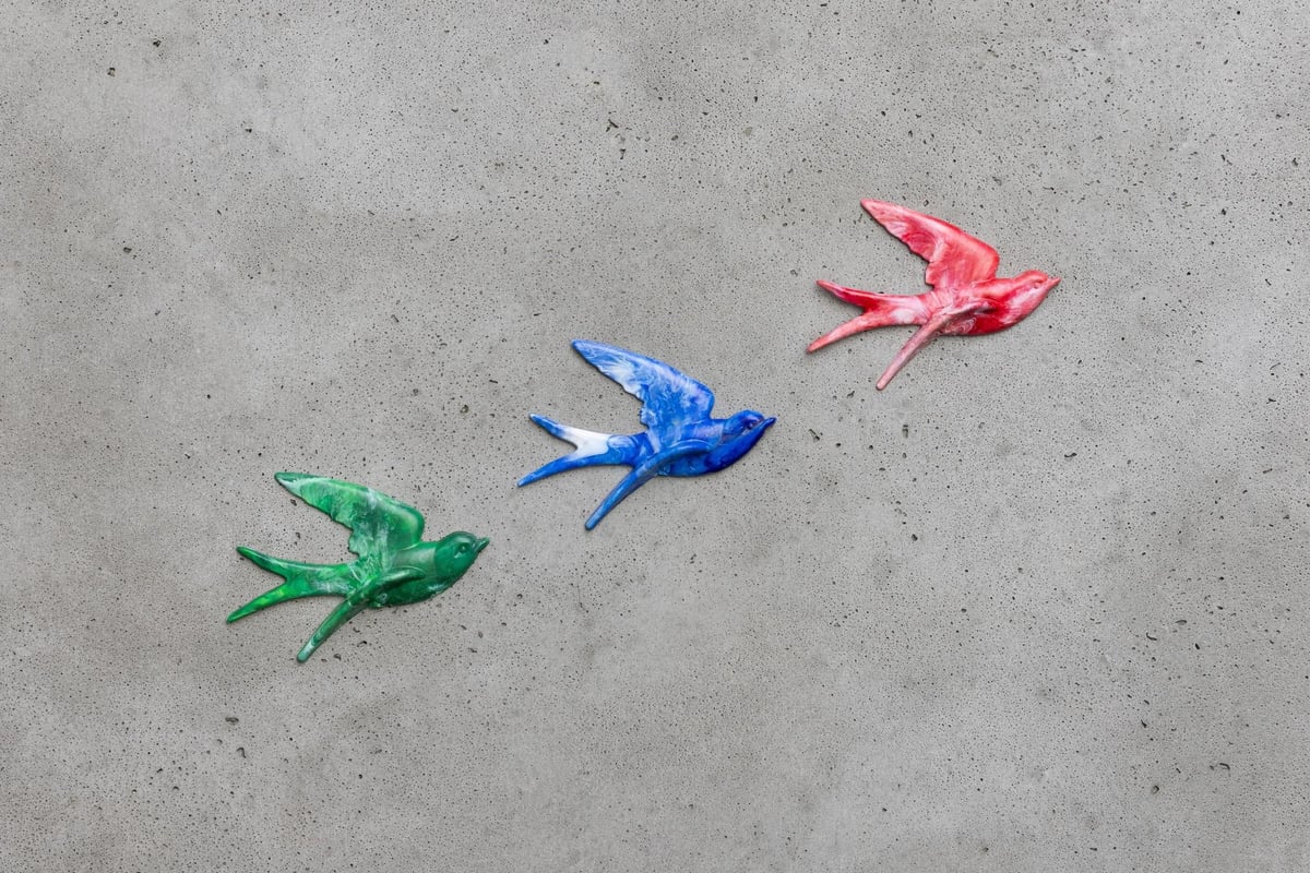 La jueza y diseñadora de interiores de la BBC Scotland, Anna Campbell-Jones y Ally Mitchell, fundadora de Ocean Plastic Pots, se han unido para crear una nueva colección sorprendente de golondrinas montadas en la pared, cada una hecha con plástico reciclado recolectado a lo largo de la costa de Escocia. Los Sucky Swallows son decorativos, significativos y sostenibles, que combinan artesanía dirigida por el diseño con impacto ambiental.