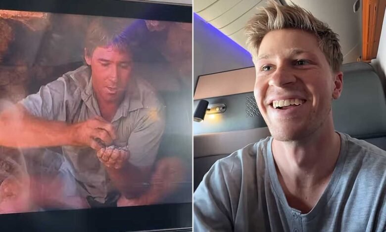 Robert Irwin mira la película ‘Crocodile Hunter’ de papá Steve Irwin en un vuelo
