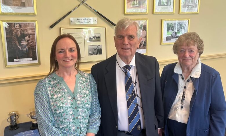 'Jessie Valentine Wall' presentado en Blairgowrie Clubhouse frente a su hijo Enlace de origen