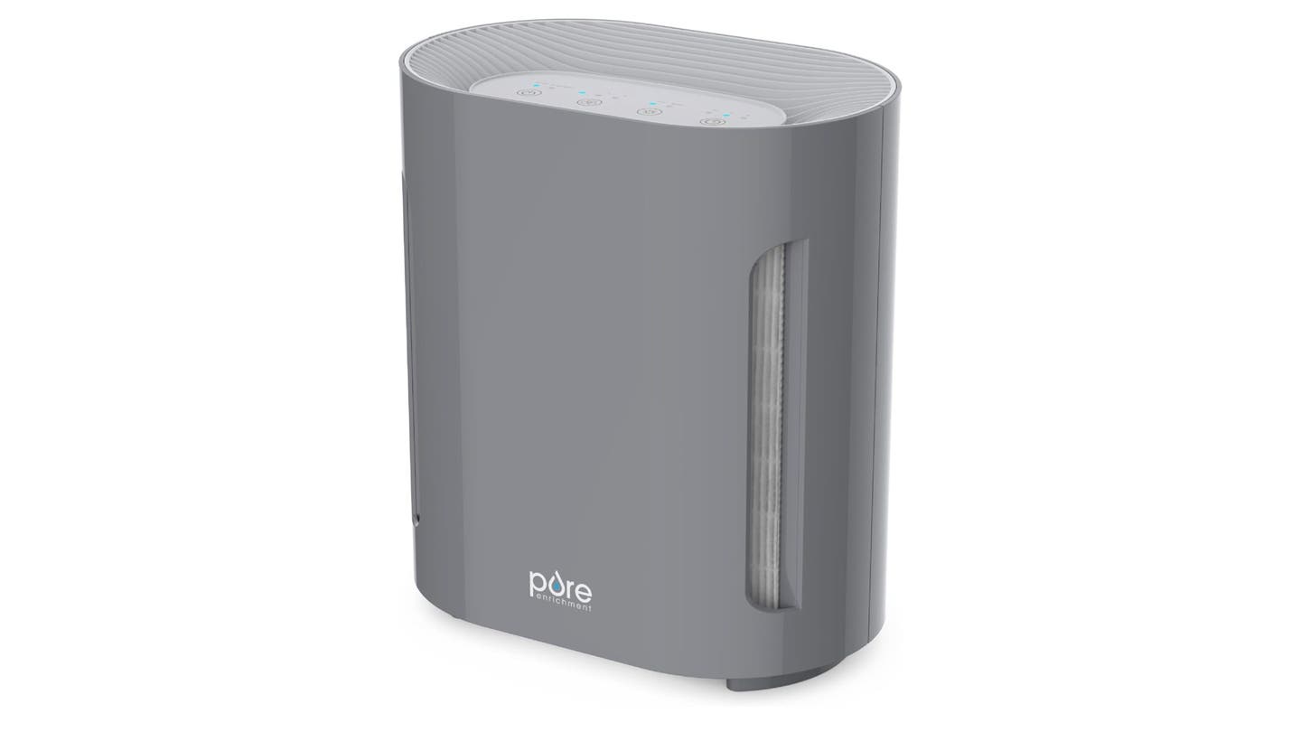 El Purificador de aire de enriquecimiento puro Tiene un filtro de aire HEPA y una luz UV-C para ayudar a eliminar hasta el 99.9% de los virus y bacterias y el 99.97% de polvo y alérgenos. El dispositivo está diseñado para habitaciones de aproximadamente 300 pies cuadrados y viene con tres velocidades de ventilador y tres configuraciones de temporizador automático durante dos, cuatro u ocho horas.
