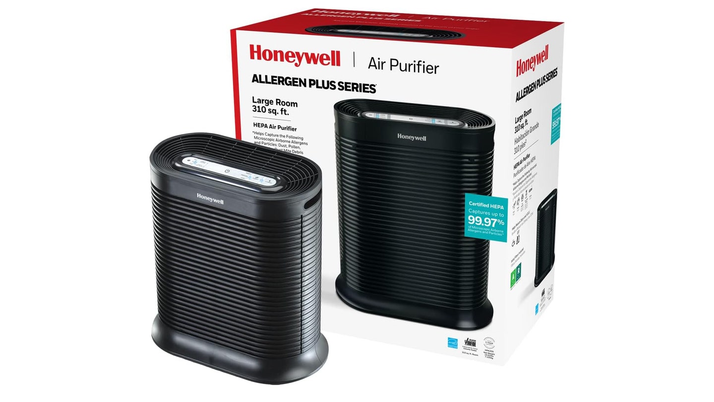 El purificador de aire HEPA alergenplus de Honeywell Tiene tres niveles de limpieza, incluido un modo turbo limpio que ayuda a deshacerse de la caspa de mascotas, la suciedad, el polen y el humo. Puede limpiar el aire en habitaciones de hasta 1,500 pies cuadrados en solo 60 minutos. Para habitaciones más pequeñas de hasta 310 pies cuadrados, el aire se puede purificar completamente en poco más de 12 minutos.