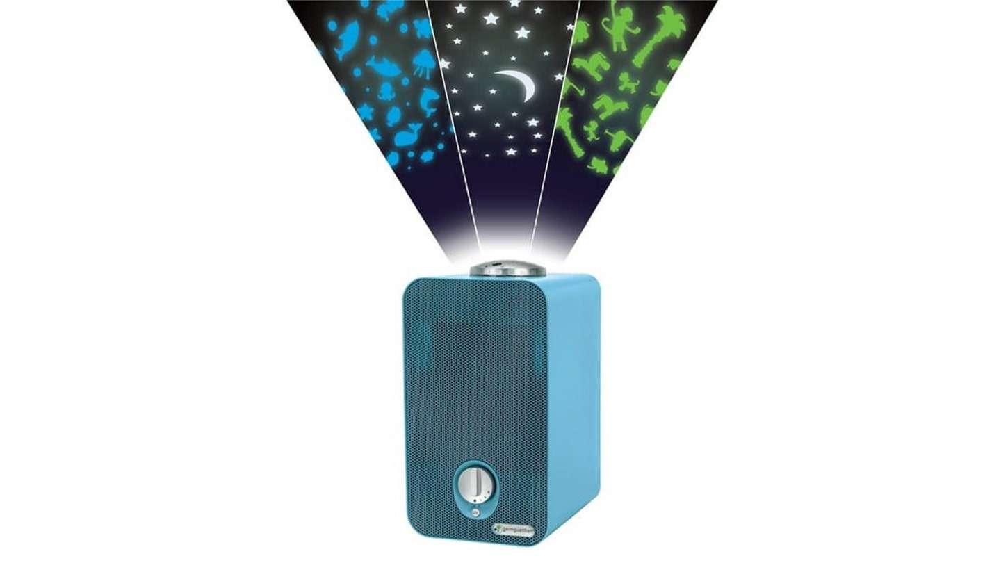 Agregue una divertida luz de noche y un combo de purificador de aire a la habitación de su hijo con el Purificador de aire de germuardiano. El filtro HEPA mata al 99.97% de los gérmenes, el polvo y los alérgenos en el aire, mientras que la luz nocturna de tres colores hace que cualquier espacio sea más divertido. Elija entre estrellas coloridas, un tema inferior al mar o una proyección temática de la selva.