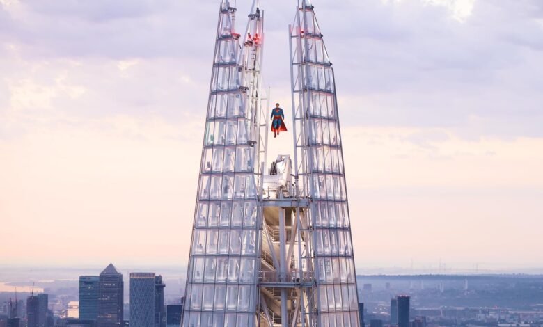 Los fanáticos de los superhéroes podrían haber pensado que estaban transportados a otro mundo, ya que Superman fue visto volando sobre Londres, en lo que es la escultura pública más alta del Reino Unido.