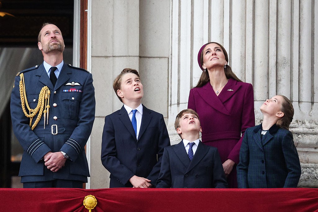 VE Día 80: Impresionante imágenes captura a Lancaster Bomber, Spitfire y Red Arrows Flypast mientras la familia real mira