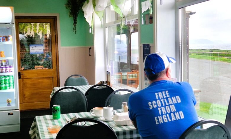 Apatía y asombro desde un café en la carretera en Trump’s Turnberry durante la visita al presidente de los Estados Unidos