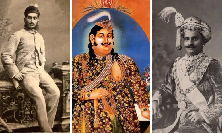 (Desde la izquierda) Nizam Mahbub Alii Khan de Hyderabad (Foto: Wikilomedia Commons), Nawab Wajid Alii Shah y Mahaarja Charadarija Chadradeari.