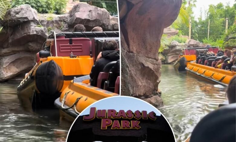 El paseo en bote del Parque Jurassic comienza a hundirse en el agua en una escena impactante en Universal Orlando: ‘Una de mis pesadillas’