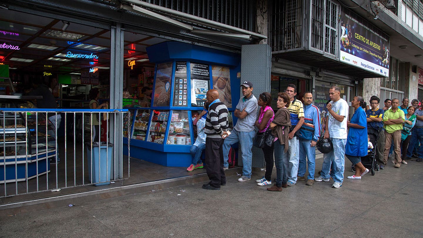 La gente se alinea para comprar pan en una panadería en Caracas, Venezuela, el viernes 17 de marzo de 2017. (Getty Images)