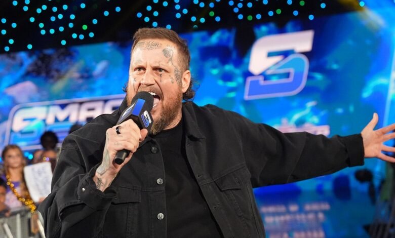 Jelly Roll tiene palabras con Logan Paul durante Smackdown en Rocket Mortgage Fieldhouse el 25 de julio de 2025 en Cleveland, Ohio. (WWE/Craig Melvin/WWE a través de Getty Images)