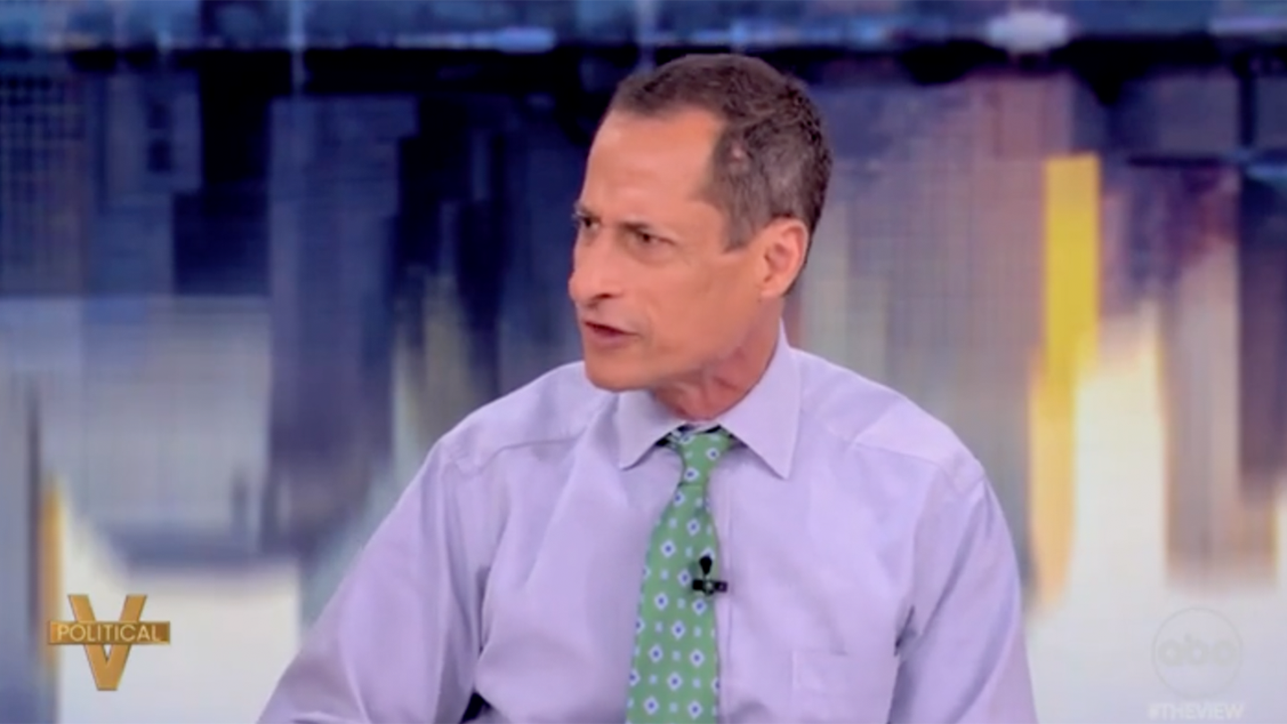 El desgraciado ex congresista democrático Anthony Weiner se burló del ex vice Kamala Harris durante su aparición en «The View». (Captura de pantalla/ABC)